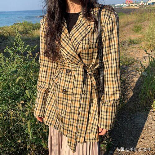 像这种2019年非常流行的元素之一的“垫肩”配上经典格子图案的宽松版西装外套,不仅会散发出复古的气息,还会打造出一种非常随性,帅气的感觉!腰部的束带可调节轮廓,可凸显出性感的身材!