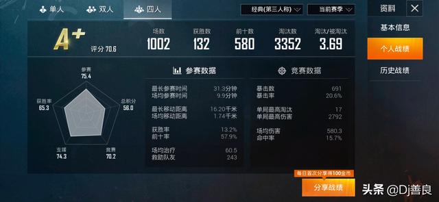 跟着队友混。有事队友上,没事你自己上,比如捡空投、搜物资,你要做的,就是做好后勤工作,队友前面冲锋,你在后面补枪,队友倒下,你救人。