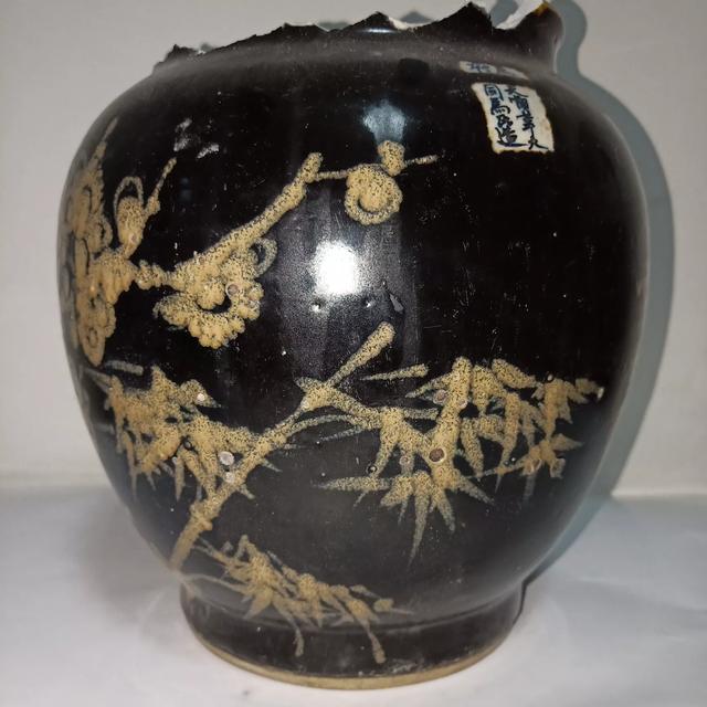明空白期正统、景泰、天顺(1436年一一1464年)此罐为天顺七年大同马氏造乌金酱秞松竹梅罐,此罐经九死一生流历三百多年。