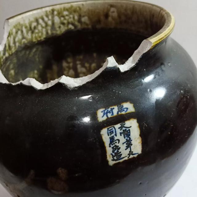 2000年喜得此罐时完好无损,2010年广州华南大厦一皮包展览公司于我联系半年多,网上浩称实力雄厚,公司内部人材济济,能帮我卖个高价,因为经验不足我就信了。当我们到广州找到他们公司进门寻问情况后发现上當了,全公司只有四个人,一人多职,总面积也就五十多平米,二话没说连藏品也没往外拿,我们就回机场蹬机回家了。
