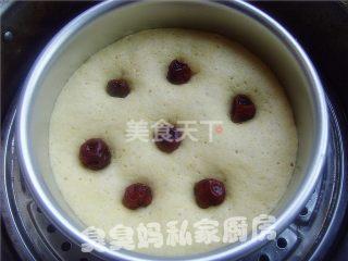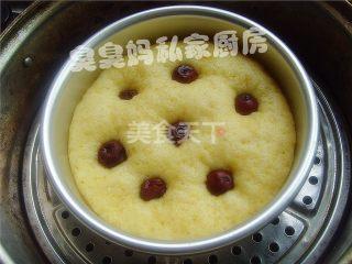 6将煮好的红枣嵌入发好的面团表面,入蒸锅。