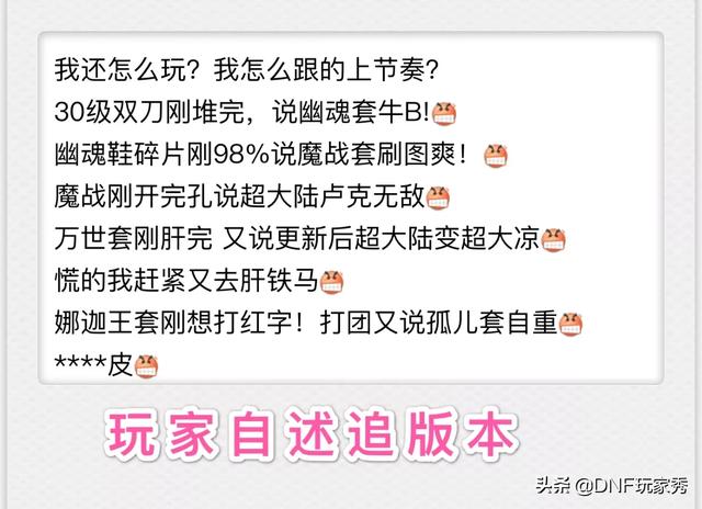 DNF玩家吐槽版本太快,追版本太累选择脱坑,你有什么看法?