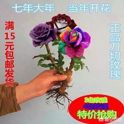 裸根苗,一般都是地栽的大苗,无论枝条粗壮程度还是体量,都比带土苗要大,并且裸根苗运输方便。但是不可否认,淘宝有一些所谓几年大苗的月季,那是切花大棚淘汰的切花月季,根系弱,苗情差,用这样的苗来糊弄花友,确实可耻可鄙,花友要注意。注意下图这种的,基本骗你没商量。