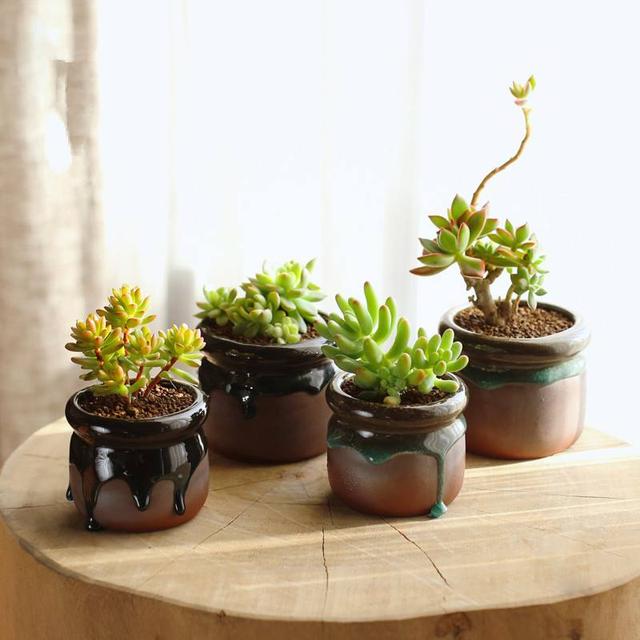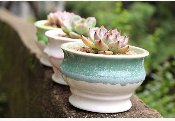 这种盆子最不推荐,里外都上了釉质,根本不透气,浇水后,肉肉们很容易烂根死掉!