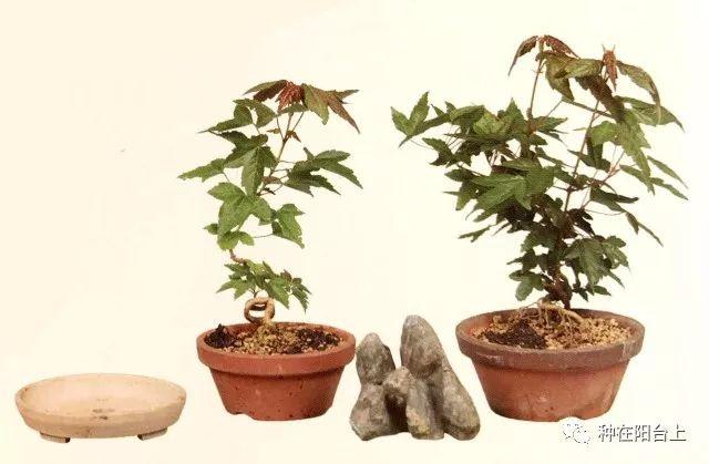 步骤七:将绑在石头上的树苗放在盆的中央。