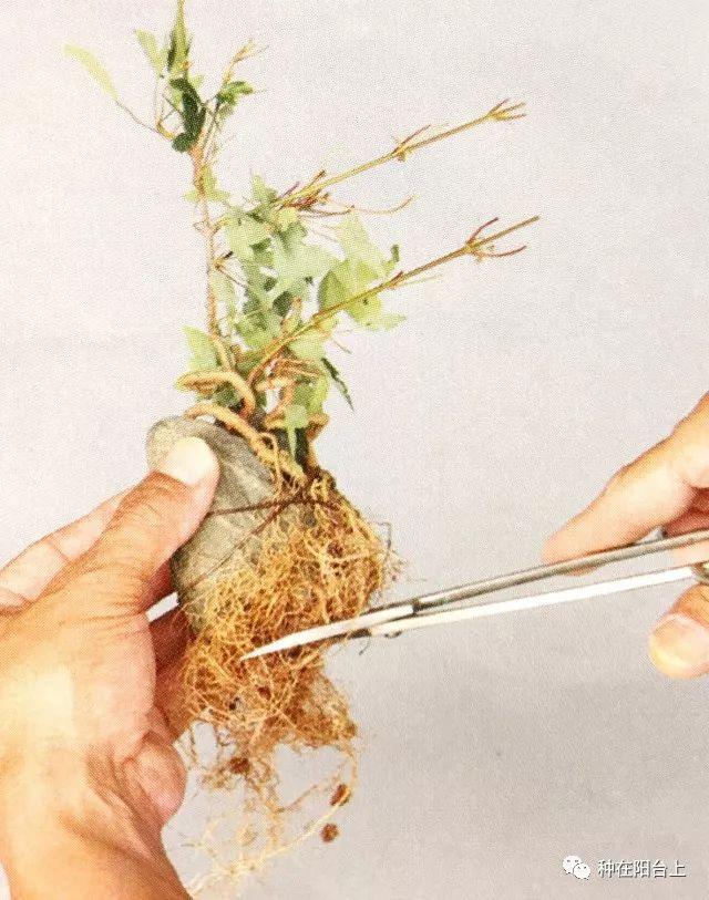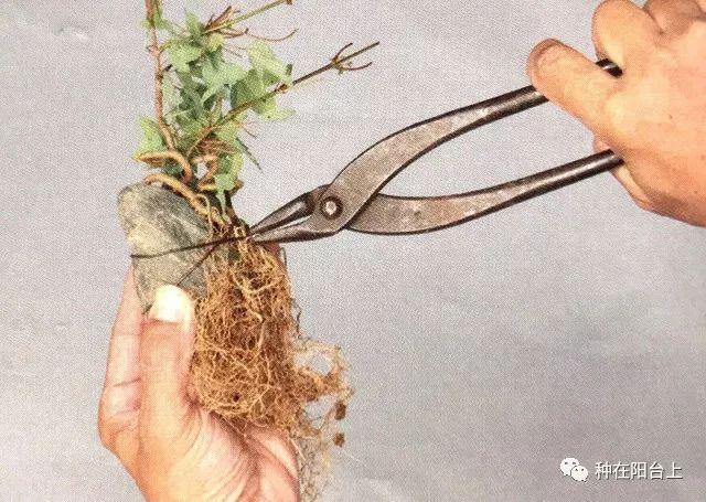 步骤三:剪去超过石头下端约1cm的根。