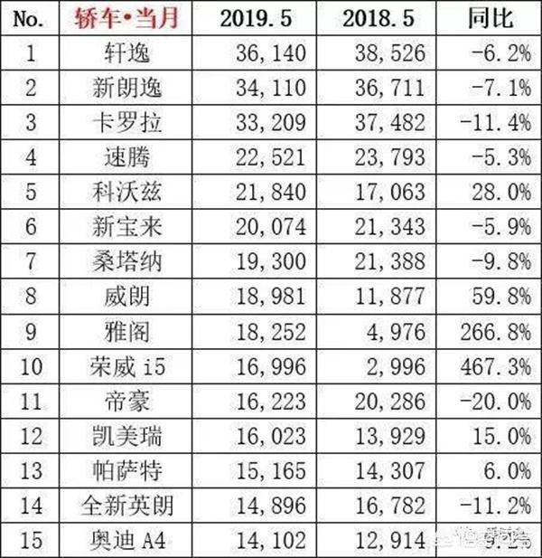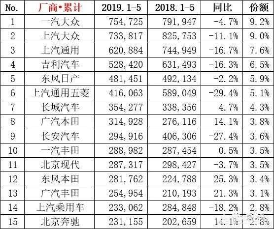 2019年5月中国市场乘用车销量数据,一方面受到经济大环境的影响,整个车市依旧没有好转的迹象,另一方面在国五切换国六的窗口期,大批国五车型降价清库,多多少少对销量有一些促进作用!