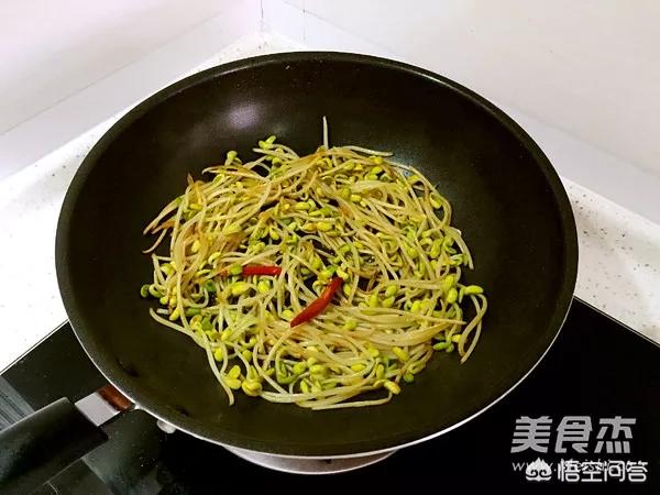 4.直到黄豆芽逐渐变软、失去水分、略带焦黄,盛出备用