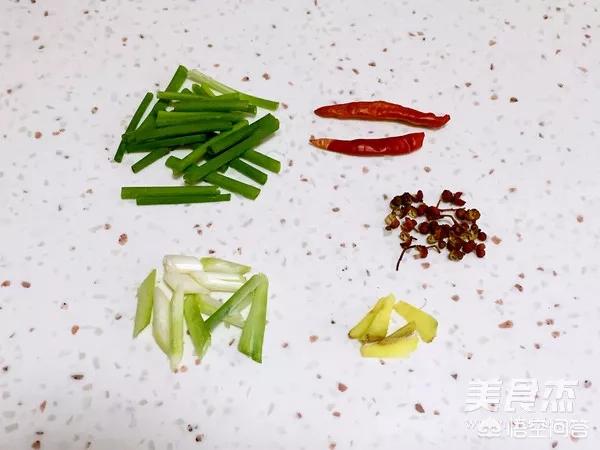辅料:干辣椒2个、花椒10粒、葱5克、姜5克、酱油1瓷勺、油适量、盐适量