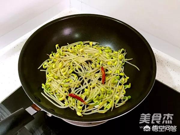 3.炒锅不放油,小火,放入黄豆芽不停煸炒