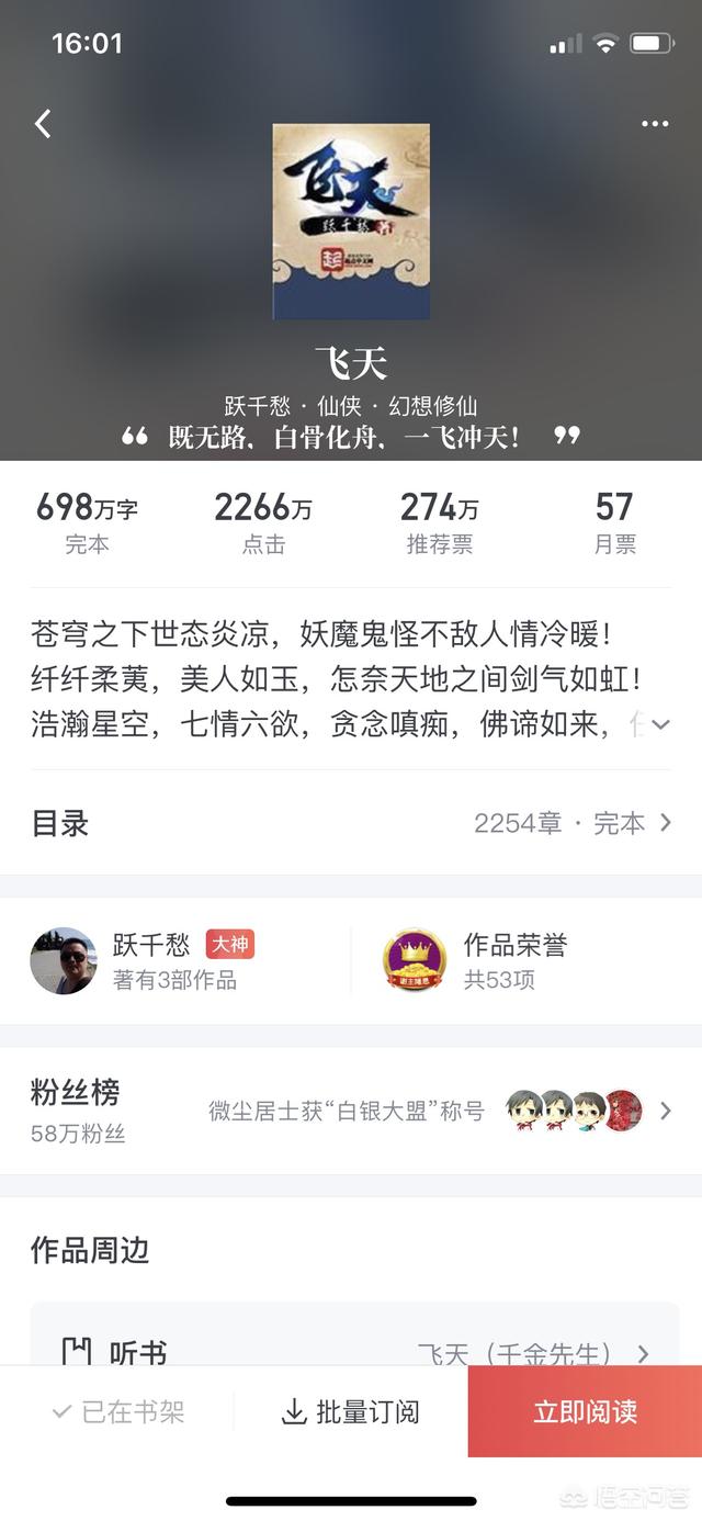 第二部,飞天,这是一部经典的仙侠作品,从书名就可以看出布局大气磅礴,角色塑造更是有血有肉,这部作品更是积累可数以百万的读者粉丝,在他新书《道君》发布时,无数读者支持,打赏更是突破千万书币,之后的成绩也一路飙升,影响力也逐步扩大。