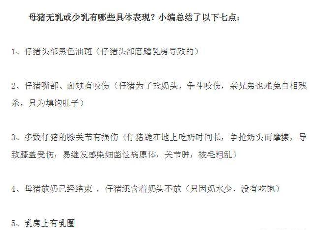 - 1、母猪无乳主要考虑营养,母猪只有摄入足够的营养才保证有乳,母猪不食该治疗就治疗,消炎就消炎,直到母猪采食正常。