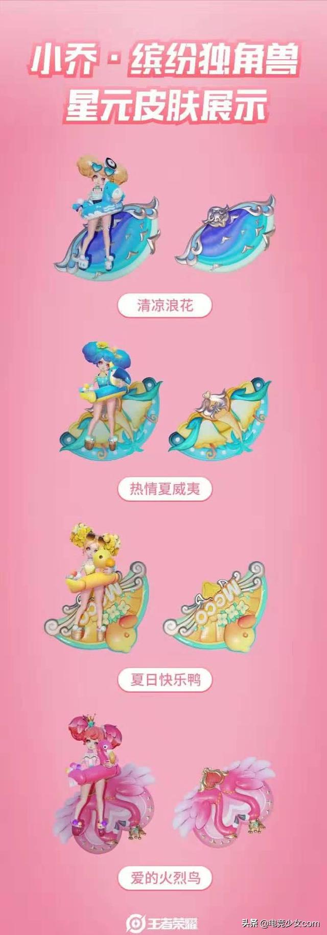 星元商店每隔一段时间就会推出新的史诗星元皮肤。这次官方曝光了乔妹缤纷独角兽的星元皮肤,这可让小乔玩家们(尤其是女孩子玩家们)十分满足啦!