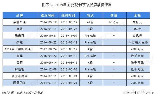 对于国内奶茶行业来说,2018年是市场处于“疯狂发展”的一年。除了大量网红奶茶品牌的走红,像“喜茶”、“丧茶”、“答案茶”、“脏脏茶”等,国内现制饮品门店数超过了45万家。在这些品牌中,全年融资超过了10亿元,奈雪の茶更是以A+轮60亿估值成为我国现制茶饮行业的第一个独角兽企业,喜茶单轮融资额达到4亿元。