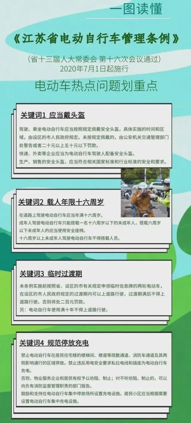 我的想法是:第一、因为,目前江苏各市县(区)骑电动车人员数量可观,考虑到全省市民安全问题,5月15日,《江苏省电动自行车管理条例》已经江苏省第十三届人大第十六次会议讨论通过,这就意味着这个《条例》从7月1日起,具有法律效应。每个人都必须自觉遵守条例,否则,可能面临承担法律责任。
