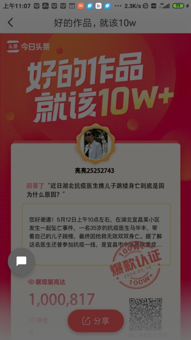 今日头条在我的创作中心看不到作品展现量,是因为手机内存问题,可以在电脑端查询。