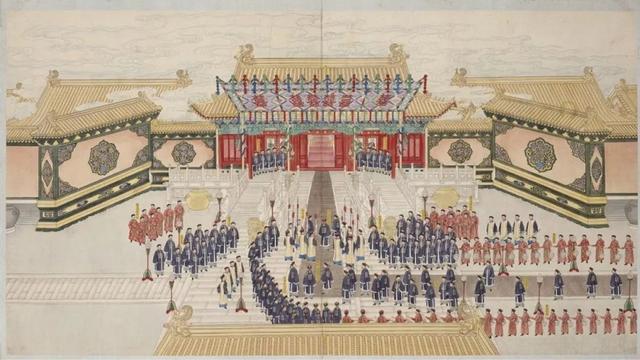 清德宗光绪二十年(公元1894年),慈禧60大寿。庆宽奉旨绘该典礼全图,从紫禁城直到颐和园之庆典全图长卷。