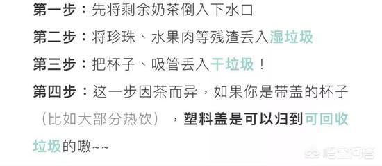 第二种:带盖的杯子:第一种,是塑封的杯子:先把剩下的奶茶液体部分从下水道倒掉,剩下的果肉和珍珠,属于湿垃圾,奶茶的塑料杯和吸管属于干垃圾,奶茶盖为回收垃圾呦~~