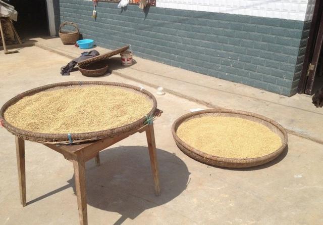 3、收获下来的水稻禁止大堆存放,以防自身发热引起霉变。另外,收获后的稻谷含水量往往偏高,为防止发热、霉变,产生黄曲霉。应及时将稻谷摊于晒场上或水泥地上晾晒如果太阳大的情况下一般2—4天就晒干了,然后入仓。