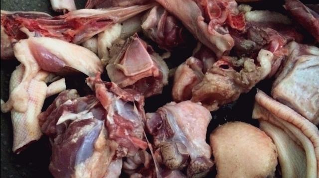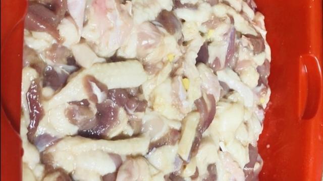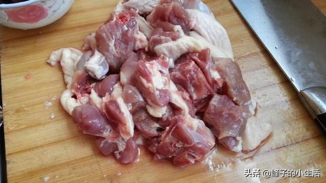 农村撒养的麻鸭1只,大约重2.5斤左右,处理干净,剁成30克左右的小块,鸭头,和鸭抓要保留整的!剁好鸭子,用清水泡上,去除血水!捞出,控净血水备用!