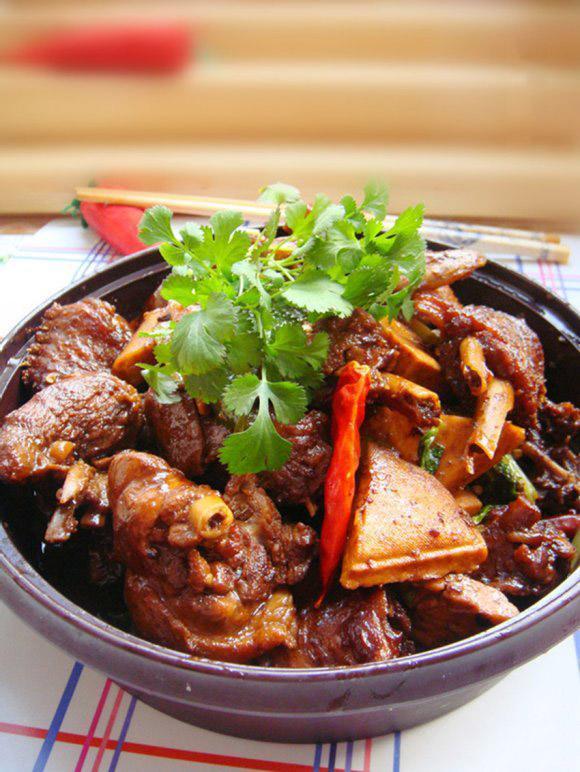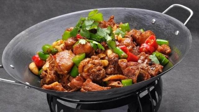 备注:五味鸭是一款类似于干锅菜的火锅品种。其的与众不同在于将装有鸭肉的铁锅放在燃烧木炭的土灶内,由于火力较小,所以锅内温度慢慢上升,不会导致煳锅。