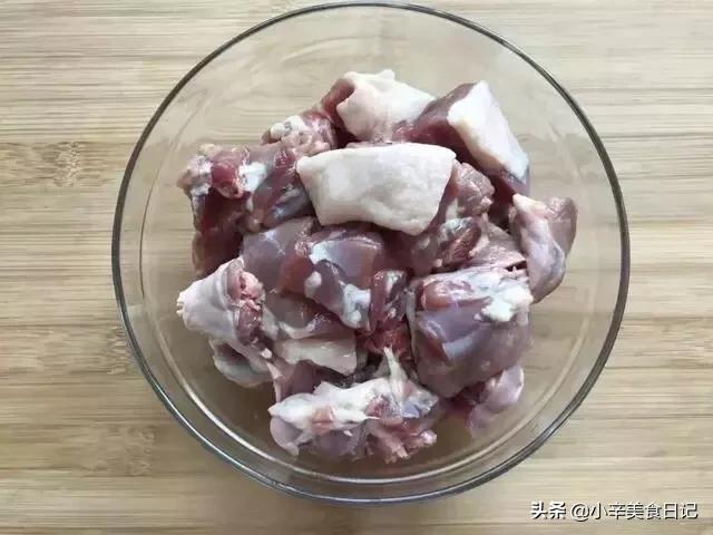 2鸭子切块要均匀放料酒大葱姜片食盐捞个底味。