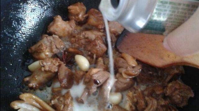 翻炒到没有水份的时候倒入一罐啤酒,要沫过鸭子就好,如果啤酒不够,添加点热水就好