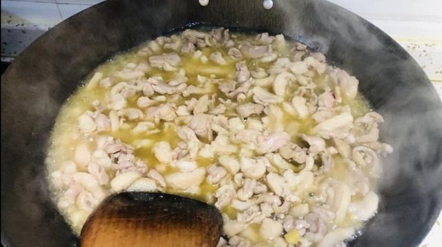 翻炒片刻后淋入料酒和生抽,老抽,辣椒油,继续翻炒