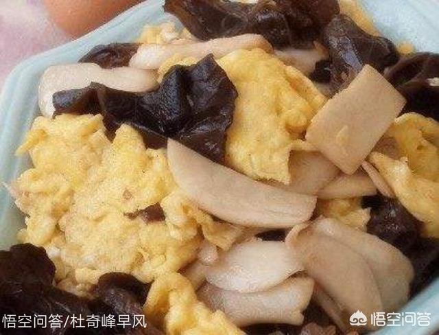 还有木耳呢,浸泡发好的木耳切片。准备好了,开始炒。