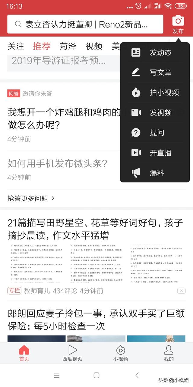 开篇,我提到了微头条加入了新的功能,这里简单给大家提一下,然后打开你们的头条看看,是否也有这一个功能,因为目前处于测试阶段,不知道你们有没有,也不知道是否对所有人开放。