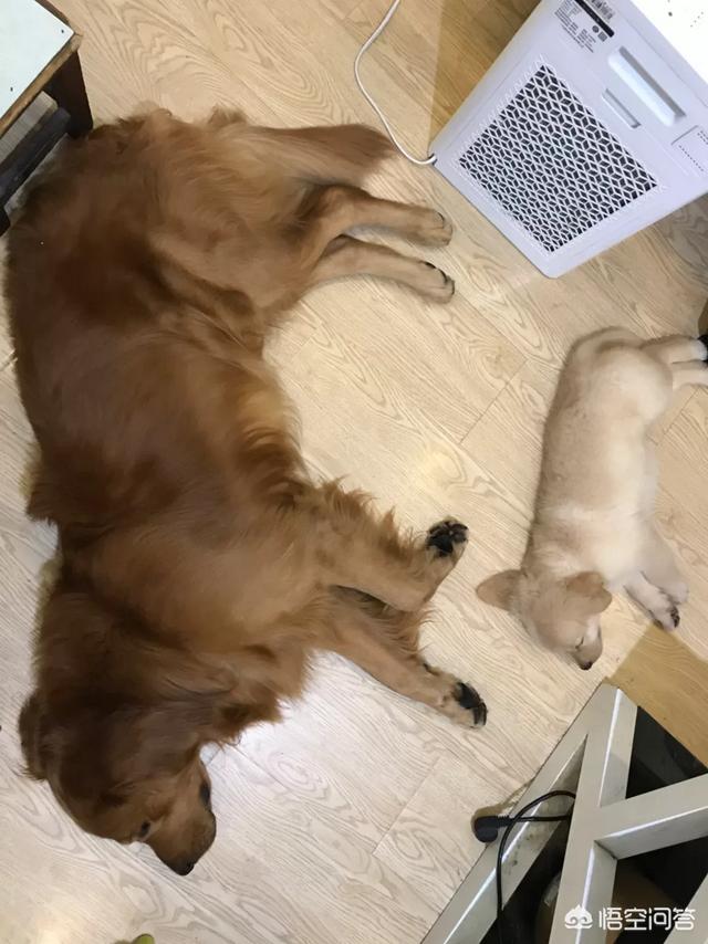 家里养了一大一小两只金毛,大的美系红毛,小的英系金毛。都是从两个月开始养的,大的一岁半,小的4个月。