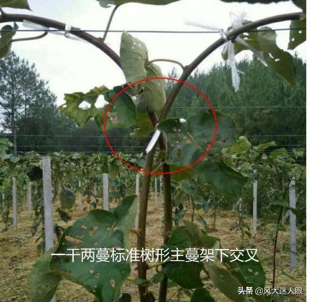 经过这3步,猕猴桃幼树标准的"一干两蔓"树形结构基本就完成了。培养标准树形整个过程需要2~3年,以扩展树形和培养健壮的主干主蔓为目的,前两年要注意抹除花蕾,避免挂果。