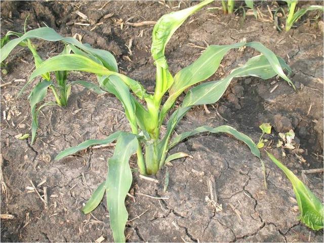 过于干旱则导至植物(玉米)吸收水分不足,其光合作用及养分输送都离不开水分。由于水份失,导至其片长缓慢,或矮挫及不长苗等。