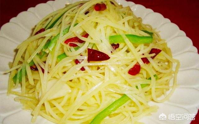 新出土的土豆,切成丝做了吃最为普遍,不过这切成丝的吃法也有很多种。比如凉拌土豆丝、炝土豆丝、炒土豆丝等等,炒土豆丝还分为蒜炒和辣炒,都是根据个人口味而定。