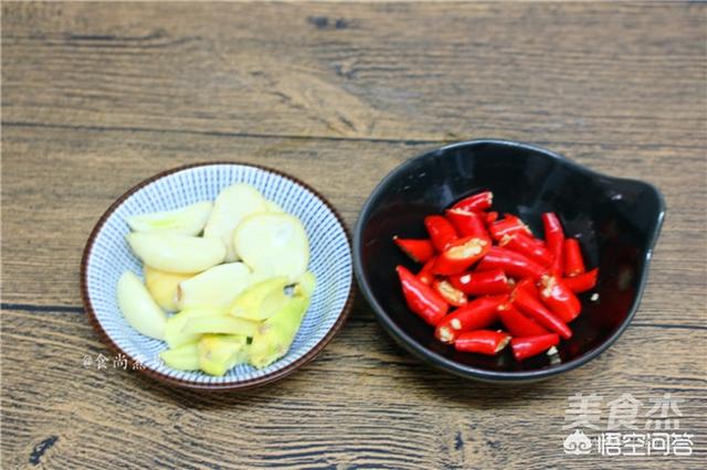 蒜瓣和生姜去皮后切片,辣椒洗净切段
