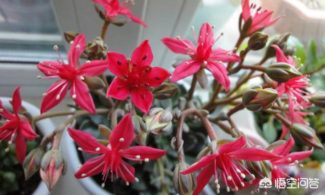 景天科的多肉植物通常是冬末到春天是花期,养的好多肉可以开花、结种子。这是它们自然的繁殖方式。开花的时候记得给他们补充磷钾肥,可以用骨粉、必开花、磷酸二氢钾这些兑水后浇花。有了磷钾肥的补充,多肉植物会长的更好,而且花开的更多。