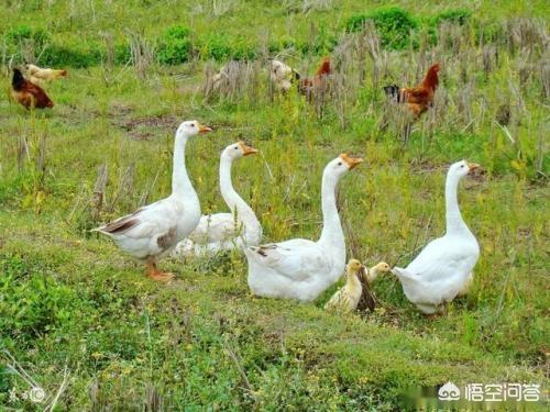 鹅可以和狗一样看家护院,对付蛇和黄鼠狼之类,养鸡场里养几只鹅这是个妙招。