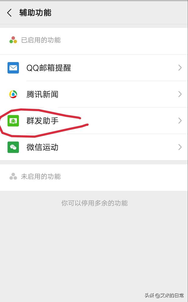 1.点开微信,点击“我”--点击“设置”--点击“通用”--点击“辅助功能”--点击“群发助手”