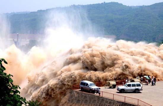 黄河全长5464公里,为中国第二大河。黄河发源于青藏高原巴颜喀拉山北麓的约古宗列盆地,流经青海、四川、甘肃、宁夏、内蒙古、山西、陕西、河南、山东等9省、自治区,在山东省垦利县注入渤海。黄河流域面积79.5万平方公里(包括鄂尔多斯内流区4.2万平方公里),汇集了40多条主要支流和1000多条溪川,流域面积达75万平方公里。黄河流域年平均降水400毫米左右,而黄河平均年径流总量仅580亿立方米,占全国河川径流总量的2%,在中国各大江河中居第8位。黄河含沙量极大,年输沙量16亿吨,平均含沙量达35公斤,是举世闻名的多沙河流。黄河的主要支流有上游段(河源至河口镇)的大夏河、洮河、湟水(包括大通河),其中洮河是黄河上游的最大支流,发源于甘肃斜山东麓,在刘家峡附近入黄河;中游段(河口镇至河南郑州的桃花峪)的无定河、汾河、渭河、伊洛河,其中渭河是黄河的最大支流,发源于甘肃省渭源的鸟鼠山,横贯八百里秦川的关中平原,在潼关汇入黄河;下游段(郑州以下至河口),此段处于华北平原上,是地上“悬河”,黄河两岸几乎所有河流都无法注入黄河,只有发源泉于山东泰山的汶河,居高临下,借助于京杭大运河,才使其一部分水量注入黄河。黄河流域幅员辽阔,地形复杂,各地气候差异较大,从南到北属湿润、半湿润、半干旱和干旱气候。