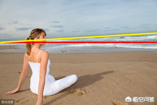 ②机位略高一点,让海平面完整的出现在远处,避免穿头而过