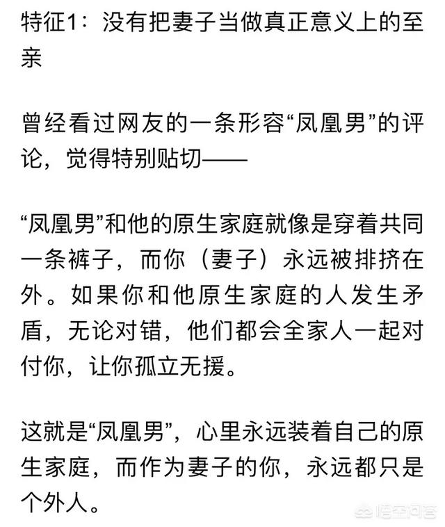 说了这么几条,凤凰男看到了估计要打我的,见证过身边的朋友嫁给凤凰男,被凤凰男抠抠索索很憋屈的经历,不可否认凤凰男也有品质好的一方面,可是以上那几点特征又有几个女孩子能忍受的了呢?本姑娘是不想遇上这样的人。