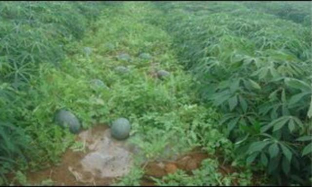 4、中国农科院研究,在干旱地区测试木薯与西瓜或甜瓜的间作,以增加土地使用量和每单位生产力。两种间作模型,西瓜+木薯和甜瓜+木薯,两种作物的处理同时进行了测试,木薯播种比西瓜或甜瓜晚20天和40天播种。