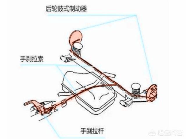 题主的这个问题及类似情况一定不要着急用力拉手刹,会导致汽车甩尾、侧翻失控状态,引发更严重的交通事故。手刹制动与制动踏板的制动原理作用不同,手刹是通过钢丝线直接连接后轮制动蹄,产生制动作用的效果,如图示: