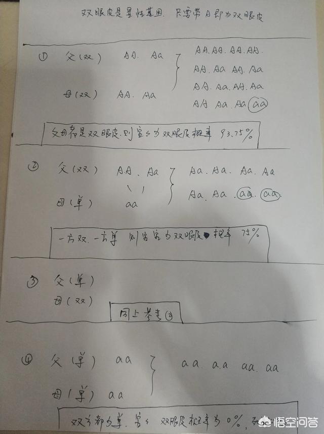 高中的生物知识,简单说,双眼皮是显性基因,完全取决于遗传,双方都是双眼皮宝宝大概率为双眼皮,双方都是单眼皮宝宝基本是单眼皮,除非基因突变或者隔壁有老王,不多废话,上图