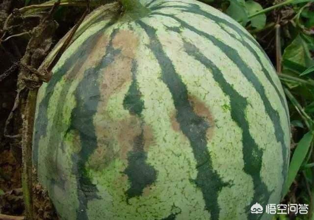 露天大田西瓜,在日光下长时间暴晒下容易发生日灼病。西瓜表面会出现灼斑影响到西瓜的商品性。尤其是将要成熟时,极易出现日约病的发生,将西瓜藏于蔓下或随手拨些野草盖在瓜上,是防止西瓜灼伤最直接、最有效的方法。