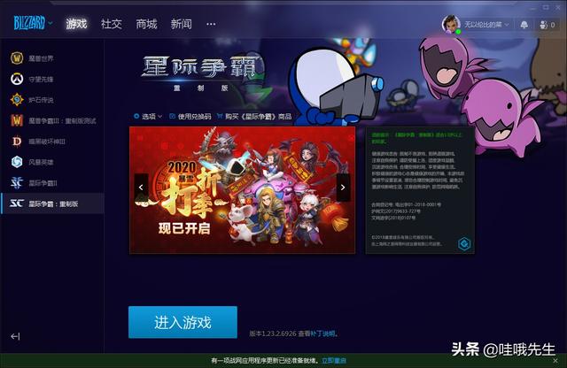 左边游戏列表里选择安装星际争霸:重制版,这个是免费的,你只需要注册一个战网账号,账号显示在右上角。这样在正版游戏加持下,你就可以玩了。我WIn7和Win10都试过,都可以玩。