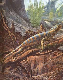 这里仅以脊椎动物的进化为例,来说明生活在水里的鱼是怎样从水里登上陆地,慢慢进化出陆地爬行动物的。可以分为两个阶段,第一个阶段:从5.3亿年前出现第一条——昆明鱼到3.67亿年前出现第一个两栖动物——鱼石螈;第二阶段:再从鱼石螈到3.15亿年前出现第一个爬行动物(林蜥),这样一算,从生活在水里的昆明鱼到完全适应陆地生活的林蜥,进化历程足足有2.15亿年。
