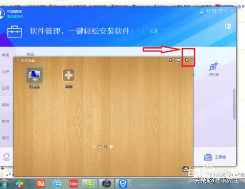 怎么把电脑桌面图标做成书桌形式?这种形式是日本人独创的吗? 新农商网 更新于 2023-07-27 18:04:23 全部 1020 怎么把电脑桌面图标做成书桌形式?这种形式是日本人独创的吗? 回复 共1条回复 我来回复 哇哦先生 这个人很懒,什么都没有留下~ 评论 打开电脑管家,点击“工具箱”点击右边的“系统”点击:箭头所指的“小书桌图标”已经把小书桌添加到快速工具,再点击:箭头所指的“小书桌图标”出现一个个性化的小书桌点击“+”可以添加你电脑桌面上的图标到电脑管家的小书桌,我要添加“计算机”图标,点击箭头所指的“计算机”图标已经把“计算机”图标添加到了小书桌如果要删除,点击“编辑”按钮点击“-”号点击后就把刚才添加的“计算机“图标删除了以后打开电脑后,可以点击小书桌上的图标,就可以打开相应的软件了 赞同 2020-06-15 09:56:09 0条评论 请 登录 或者 注册 后回复。