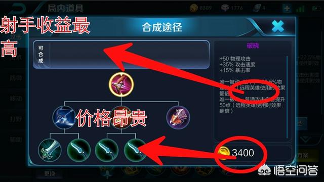 射手远程基本收益都大,而穿云弓只是破晓的一个小部件,你说呢能不能一起出呢?个人推荐破晓在第3或者4大件出。第五个的时候经济已经需要10000,基本12分钟大后期了,
