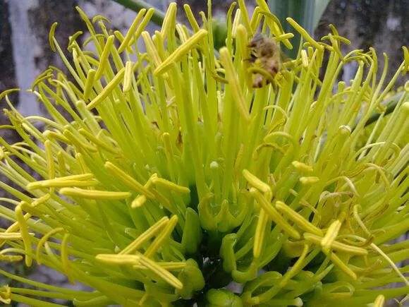龙舌兰,又叫龙舌长原产于墨西哥,龙舌兰有些种类在原产地要长十年或者是十几年才能开花,巨大的花絮高达七八米,是世界上最长的花絮,白色和浅黄色的花多达数百朵。花后植株就哭死,所以龙舌兰被称为世纪植物